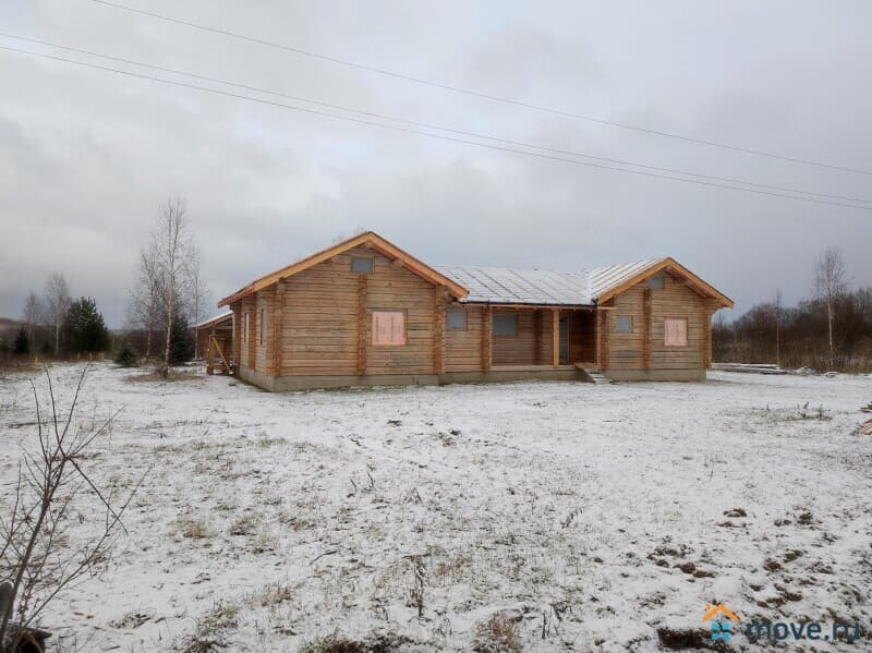 #1171. КП Эра. Коттедж 240 м2 с участком 1,3 Га на 1-й линии Эры. КП Эра, Калязинский муниципальный округ. В коттеджном поселке бизнес класса со своим озером, внутренним лесом и выходом на реку продается новый загородный дом под чистовую отделку площадью 240 м2 с баней и беседкой на участке 120 соток (1,2 Га). До берега Эры (приток Волги) 100 метров. У реки в этом месте широкое судоходное устье протяженностью около 500 метров, впадающее в Волгу. С южной стороны поселок граничит с сосновым лесом, откуда начинается большая лесопарковая зона дома отдыха Фонвизино, протянувшись от Благуново до Ново-Окатово. Инфраструктура поселка: газ, электричество, внутрипоселковые гравийные дороги и проезды, зона отдыха, свой внутренний парк и озеро, все места общего пользования освещены. Вдоль собственной береговой линии протяженностью 500 метров расположены пляж, причалы для яхт и катеров. Чистая река, лес и прекрасный воздух. Территория охраняется, проезд через КПП. ОБЪЕКТЫ ПРОДАЖИ: 1) Новый одноэтажный дом общей площадью 240 м2. Год постройки 2022. Типовой проект Северная деревня. Без отделки. Рубка из лафета в норвежский замок. Исходный диаметр бревна 40 см. Монолитный ленточный фундамент. Планировка: прихожая 5,3 м2, коридор 13,7 м2, столовая 32 м2, кухня 7,6 м2, гостевой санузел 8,8 м2, гостиная 30,7 м2, коридор 4,5 м2, две спальни 13 и 9 м2, две детских по 11 м2, детский санузел 5,3 м2, мастер спальня 13 м2, мастер санузел 8,3 м2. 2) Банный дом общей площадью 118 м2. Планировка: прихожая 36 м2, кухня 7,7 м2, санузел 3,2 м2, гостевая спальня 16,6 м2, комната отдыха 19,7 м2, душевая 12м2, сауна 9 м2, котельная 10 м2, комната для хранения 13,7 м2. 3) Беседка площадью 50 м2. 4) Земельный участок 129 соток (1,3 Га / 12878 м2). Состоит из нескольких смежных участков равнозначной площади, образующих единый жилой массив. Межевание проведено. Сохранен природный ландшафт местности, растут сосны, ели и березы. 1-я линия Эры. До берега 100 метров. Уникальный обзорный вид с участка на реку. КОММУНИКАЦИИ: Электричество 15 кВт (трехфазное) заведено в дом, газовая магистраль по границе участка, подключение оплачено. Есть септик из бетонных колец. РАСПОЛОЖЕНИЕ: Удобная транспортная доступность и круглогодичный подъезд из Москвы по федеральной трассе Сергиев Посад - Калязин. До Калязина всего 5 км. От МКАД 170 км.